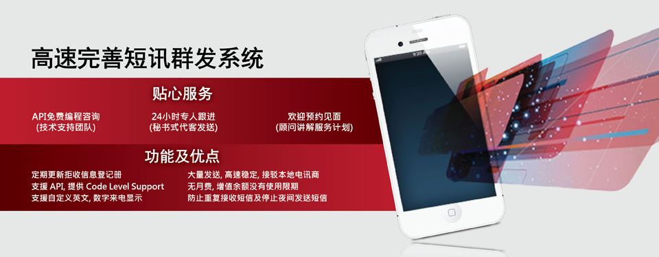 | 企业短信群发 | 首次开户可免费获得20个免费短信试用 | 不适用 | 1.预先缴费 2.每个传送至香港地区的短信, 会被扣除一个短信用量,所有台一律相同收费 3.没有合约 4.没有每月最低消费 5.短信数量没有期限 |