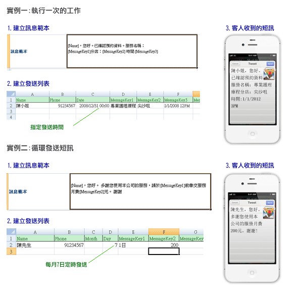 透過上傳 Excel 群發個人化短訊內容: